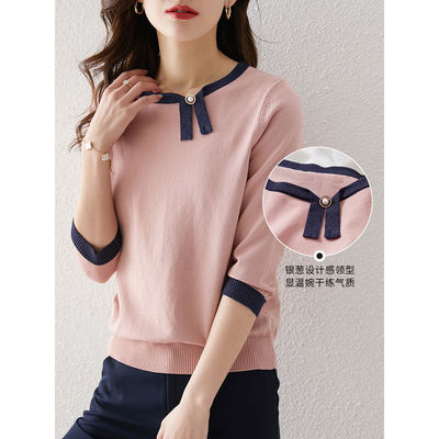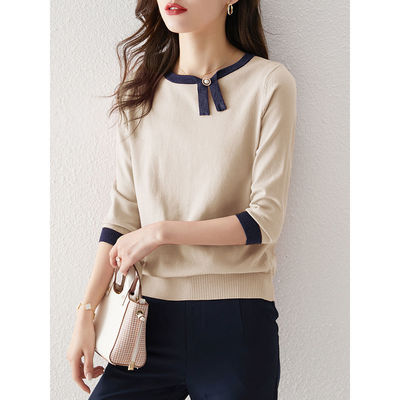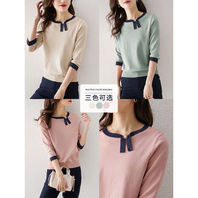 针织衫女春夏2021七分袖套头T恤上衣宽松新款女装打底针织衫 |