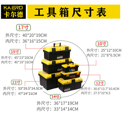 货源类别是否进口:否|订货号:SK-003|品牌:耐普鹿|货号:03|型号:SK-003|类型:工具箱|承重:200斤|加工定制:是|主要用途:汽车随车、机械配套、维修服务、家庭工具存放|板材:优质工程料|表面材质:工程料|内衬材质:工程料|框架材料:工程料|产地:山东|大号尺寸:450x230x200(mm)|小号尺寸:360x170x190(mm)|中号尺寸:400x200x190(mm)|材质:ABS|款式:经典款|颜色:黄黑|载重:30kg|重量:20寸:2.4kg、19寸:1.6kg、17寸:1.3kg、14寸:1.0kg|是否跨境出口专供货源:否|规格:10寸黄黑:25x12x10cm,12寸黄黑:30.6x13.7x10.4cm,14寸黄黑:36x17x19cm,17寸黄黑:40x20x19cm,19寸黄黑:45x23x20cm,23寸黄黑:53x29.5x24.5cm,工具包大号:44x26x26cm,工具包中号:39x23x24cm,工具包小号:32x23x24cm,13寸黑色:35.5x19.5x15cm|产品系列:手提工具箱。