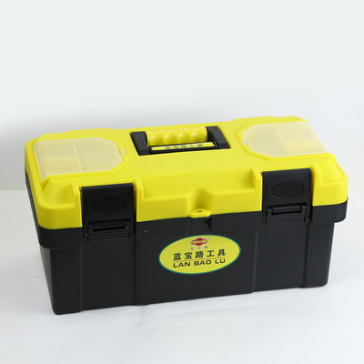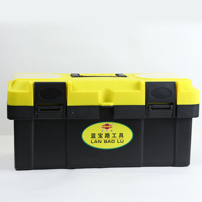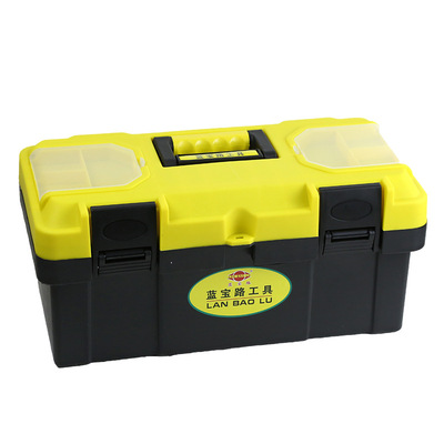 货源类别是否进口:否|品牌:蓝宝路|型号:塑料工具箱|类型:工具箱|承重:50kg|加工定制:是|主要用途:放置工具物品|板材:塑料|表面材质:塑料|内衬材质:优质塑料|框架材料:全塑|产地:山东临沂|大号尺寸:440*240*200**长*宽*高(mm)|小号尺寸:360*190*180**长*宽*高(mm)|中号尺寸:400*210*18000长*宽*高(mm)|材质:ABS|款式:多功能手提|容量:双层|颜色:黄色|载重:10kg|重量:2kg|规格:14寸塑料工具箱 一件12个 按件下单,17寸塑料工具箱一件9个,19寸塑料工具箱一件9个,23寸塑料工具箱1件4个。