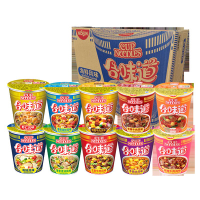 日清合味道牛肉海鲜虾仁猪骨多口味公仔方便泡面83克12杯 |