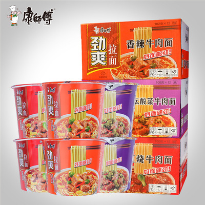 现货!康师傅劲爽方便面整箱12桶装香辣红烧老坛酸菜速食泡面批发 |