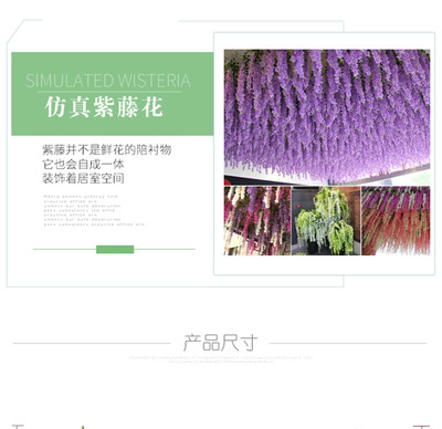 品牌:木亦|货号:仿真紫藤花|材质:绢花|工艺:半手工半机械|加工定制:否|产品编号:仿真花|类型:仿真花|包装:纸箱|是否专利货源:否|是否进口:否|颜色:紫兰色110cm,奶白色110cm,粉色110cm,紫红色110cm,绿色110cm,蓝色110cm,紫兰色75cm,奶白色75cm,紫红色75cm,粉色75cm,蓝色75cm,绿色75cm,(注意)单价为单支价格,纯白豆花(需要做货),加密款奶白,加密款蓝色,加密款紫兰色,加密款粉色,加密款紫红,加密款绿色,大红色110(需定做),加密款大红色,扎带|主要下游平台:ebay,亚马逊,wish,速卖通,独立站,LAZADA|主要销售地区:非洲,欧洲,南美,东南亚,北美,东北亚,中东|有可授权的自有品牌:否|是否跨境出口专供货源:是|是否属于礼品:否