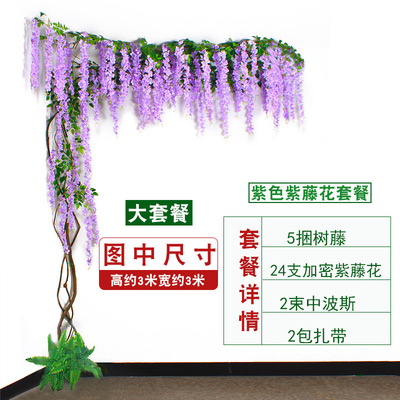 婚庆装饰紫藤花仿真客厅装饰豆瓣花塑料藤绿叶藤条紫藤花厂家批发 |