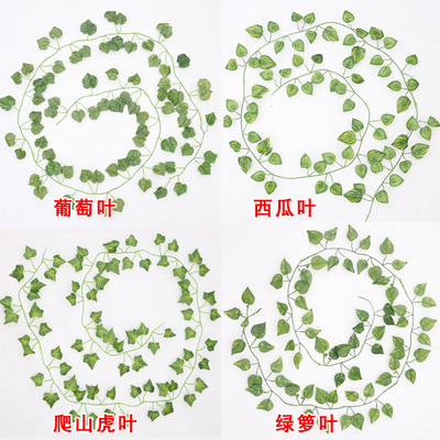 品牌:无|货号:9|材质:绢布|工艺:仿真工艺|加工定制:是|产品编号:2米仿真叶|类型:藤条|包装:OPP|是否专利货源:否|是否进口:否|颜色:爬山虎叶,海棠叶,西瓜叶,绿萝叶,葡萄叶,36片海棠叶,36片地瓜叶,36片葡萄叶,36片西瓜叶,36片绿萝叶|主要下游平台:ebay,亚马逊,wish,速卖通,独立站,LAZADA|主要销售地区:非洲,欧洲,南美,东南亚,北美,东北亚,中东|是否跨境出口专供货源:是|是否属于礼品:否|摆挂形式:挂饰|制作方法:机械|材质种类:植物