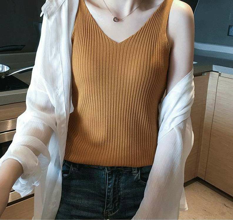 韩版夏季新款2021T恤短款冰丝针织衫短袖薄款洋气V领上衣女ins潮